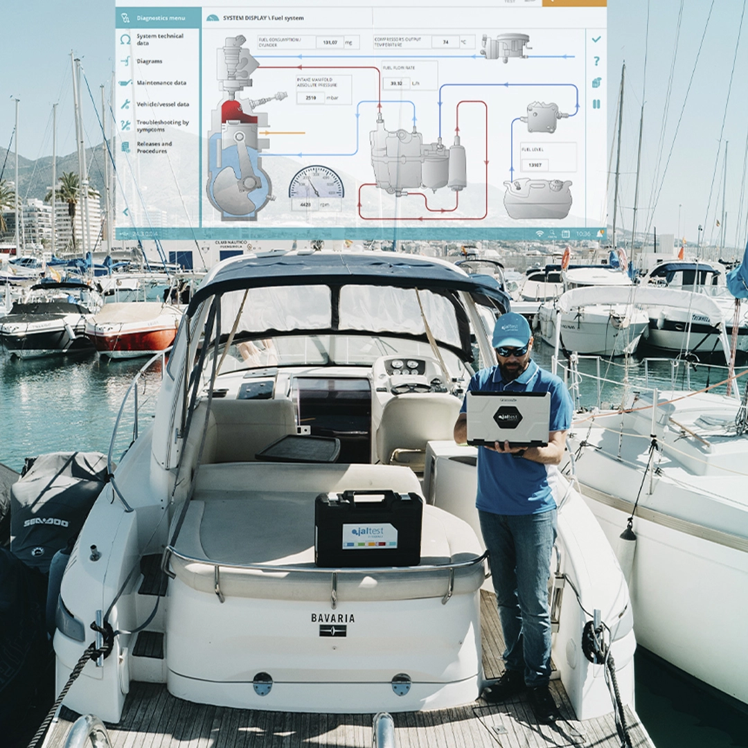 Gracias a la amplia experiencia de Jaltest en vehículo terrestre, podemos adentrarnos con éxito en el diseño de una completa herramienta de diagnóstico y mantenimiento para embarcaciones, motos de agua, motores fueraborda e intraborda, así como motores estacionarios.